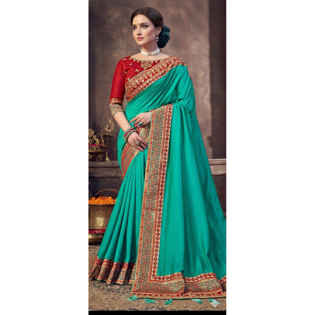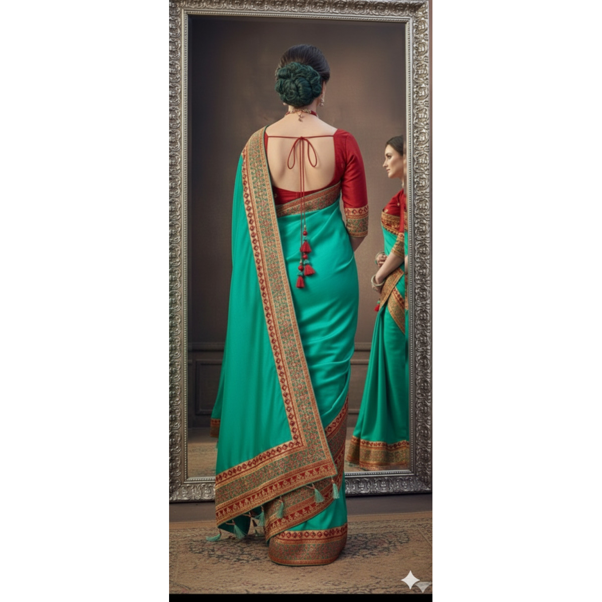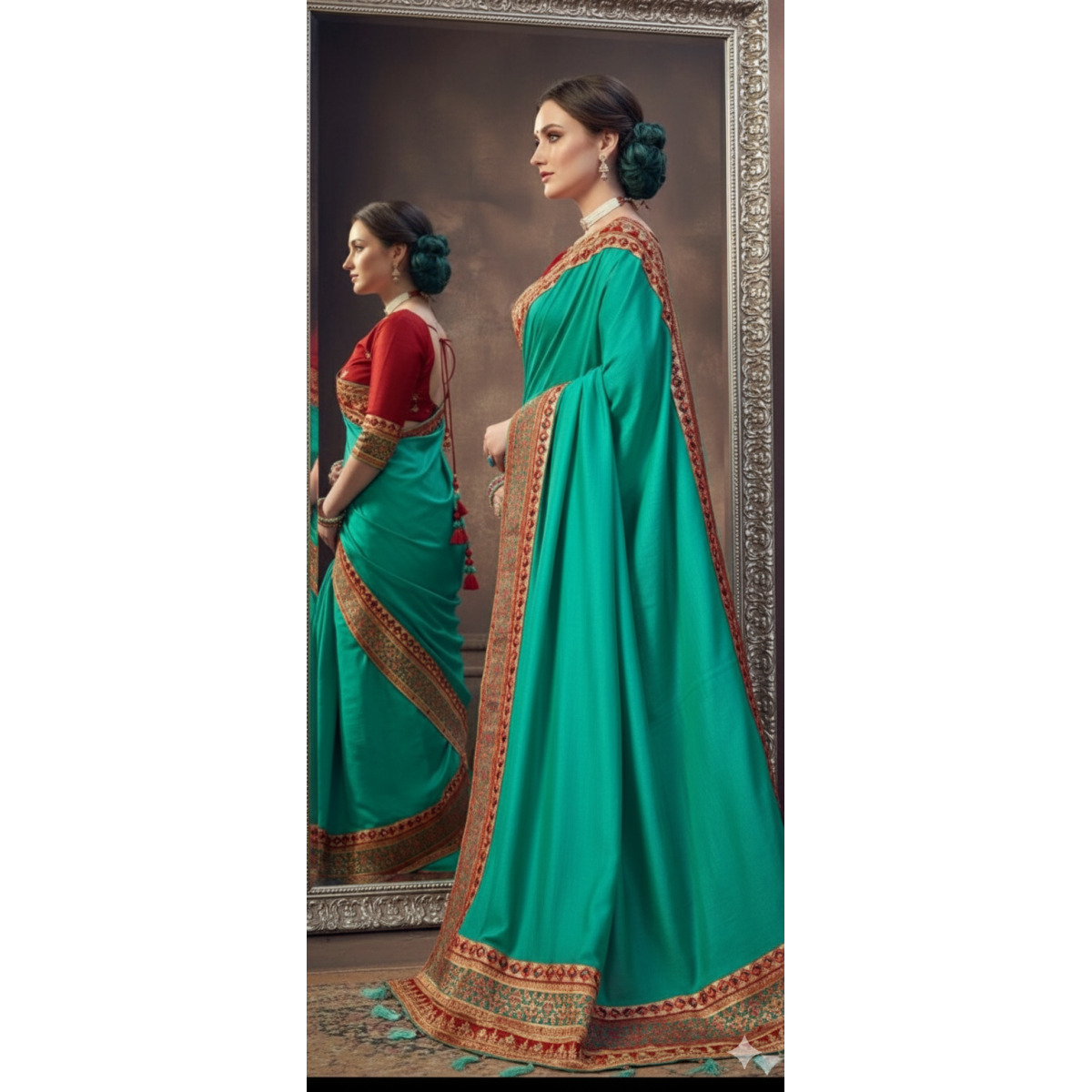 Designer sarees soft cotton silk material with Embroidery work on border and Embroidery work on blouse