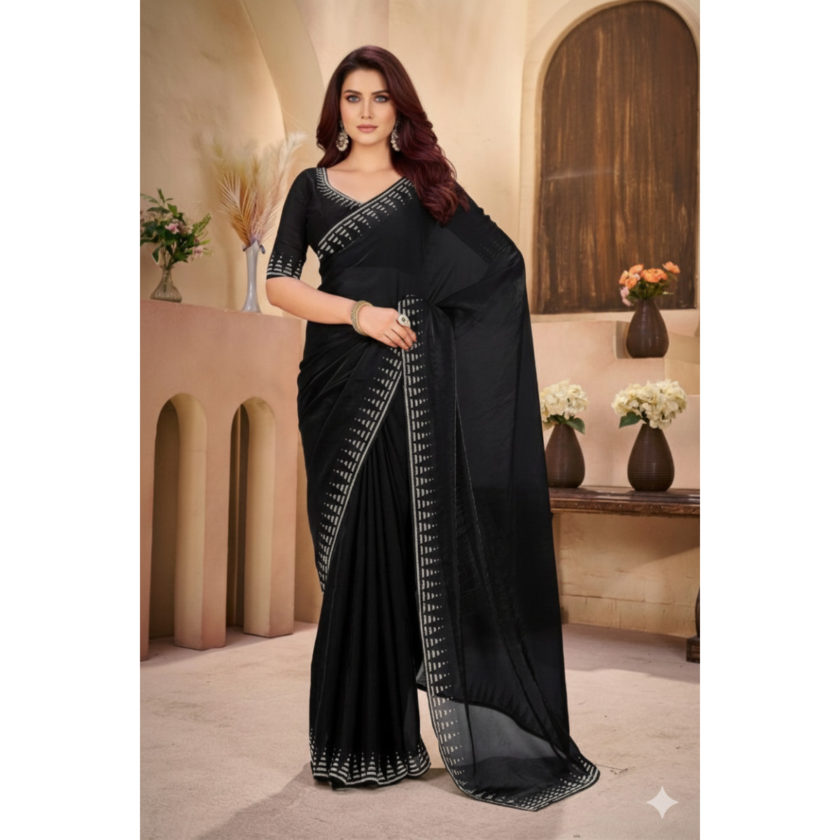 Designer sarees soft material and Diamond border party wear saree